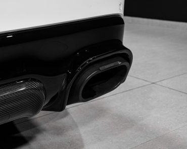 This example is fully kitted with genuine Brabus components, including 24-inch Monoblock M Platinum Edition Brabus wheels, carbon-fibre exterior detailing, and matte black Brabus exhaust tips, giving it an aggressive yet elegant stance that commands attention from every angle.